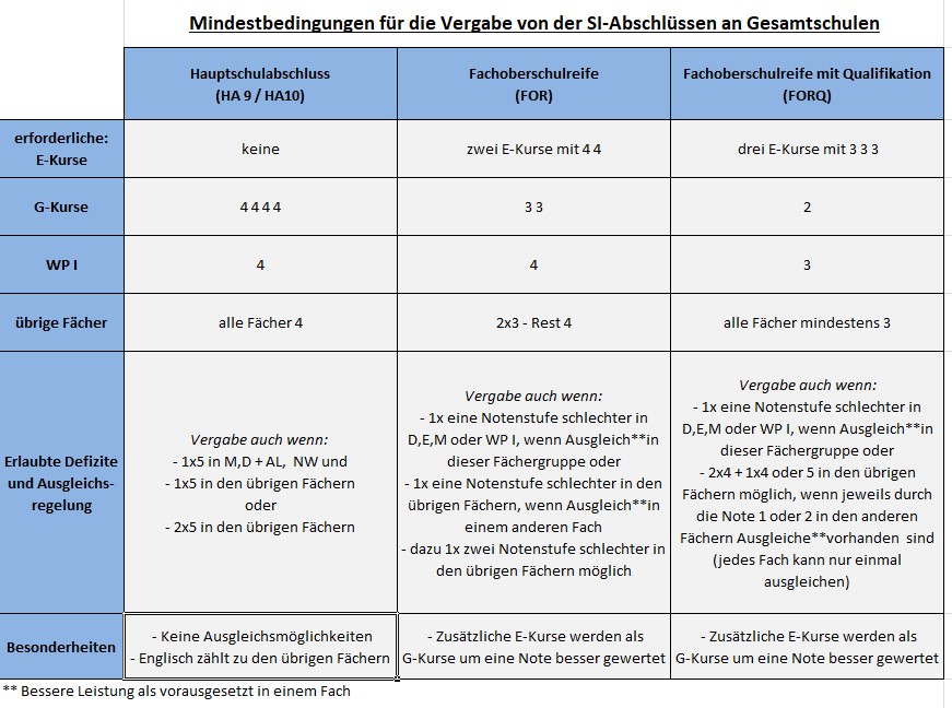 - FOR nach der Klasse 10 mit FORQ (Qualifikation zum Besuch der Oberstufe)