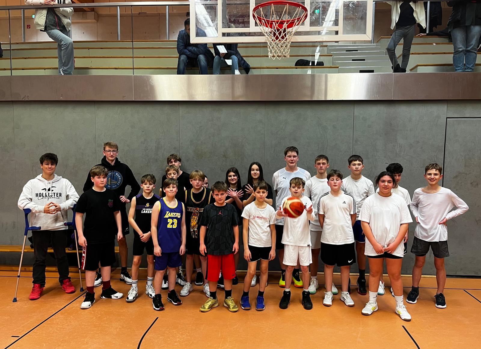 Unsere Basketball Schulmannschaft, die montags als AG zusammen trainiert, hatte gestern ihr erstes Basketballspiel gegen eine andere Mannschaft.
