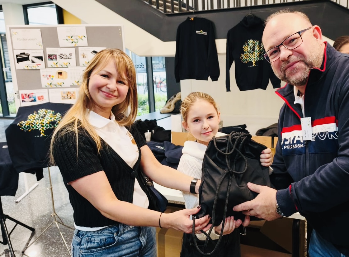 In den Sportbeuteln waren unter anderem hochwertige Trinkflaschen, Stifte, Süßigkeiten und als Clou Holzzollstöcke, die exklusiv mit dem Schriftzug „Gesamtschule Waldschlösschen“ versehen wurden.