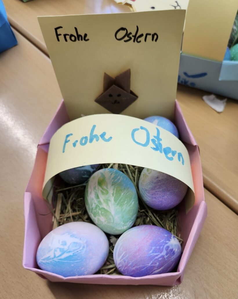 Die Antwort lautet eindeutig „Ja“. Also haben die Kinder am 20. März, dem offiziellen Tag des Glücks, fleißig Muffins gebacken, Osterkörbchen gebastelt, Eier gefärbt und Blumenkörbe bepflanzt.