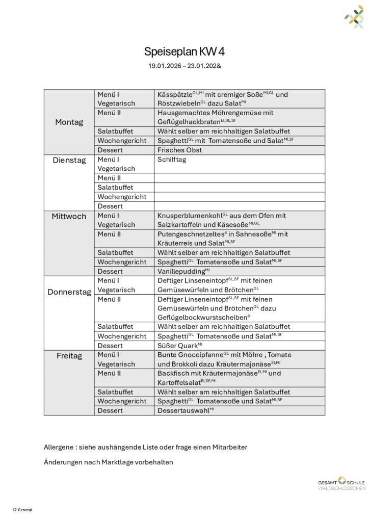 Gemeinsam setzen sie im neuen Schulgebäude auf eine frische, moderne Küche, die nicht nur schmeckt, sondern auch gut tut. Dabei steht das Wohl der Schülerinnen und Schüler an erster Stelle. Die Speisen werden täglich frisch zubereitet – ohne Fertigprodukte, mit viel Gemüse, und auf Wunsch auch vegetarisch oder allergenbewusst. Für Ihr Kind wird es verschiedene Menüoptionen geben, so können wir gezielt auf die Wünsche und Bedürfnisse Ihrer Kinder Rücksicht nehmen. Die Kinder müssen ihr Essen zuvor nicht auswählen, sondern können sich jeden Tag vor Ort entscheiden. Der Schülerausweis wird als Mensa-Karte gelten und die Daten auf diesem entsprechend gespeichert.
