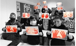 Trotz Lockdown sammelten unsere Schüler*innen des 5. und 6. Jahrgangs der Gesamtschule Velbert-Neviges am Mittwoch, 27. Januar 2021, an die 200 rote Handabdrücke, um ein Zeichen gegen Gewalt zu setzen. Im Rahmen des „Tag des Gedenkens an die Opfer des Nationalsozialismus“ bereitete die Fachkonferenz Gesellschaftslehre für alle Schüler*innen ein Projekt zum Thema „Gewalt und Frieden“ vor. Im digitalen Unterricht informierten sich die Schüler über das Schicksal der Kindersoldat*innen, erstellten und fotografierten zu Hause ihre individuellen roten Handabdrücke und schickten sie an die Fachkonferenz. Die Schüler*innen zeigten sich sehr interessiert an der Thematik und setzten mit der Einsendung ihrer zahlreichen Handabdrücke ein Zeichen gegen aktuelle Gewalt an Kindern in der Welt.